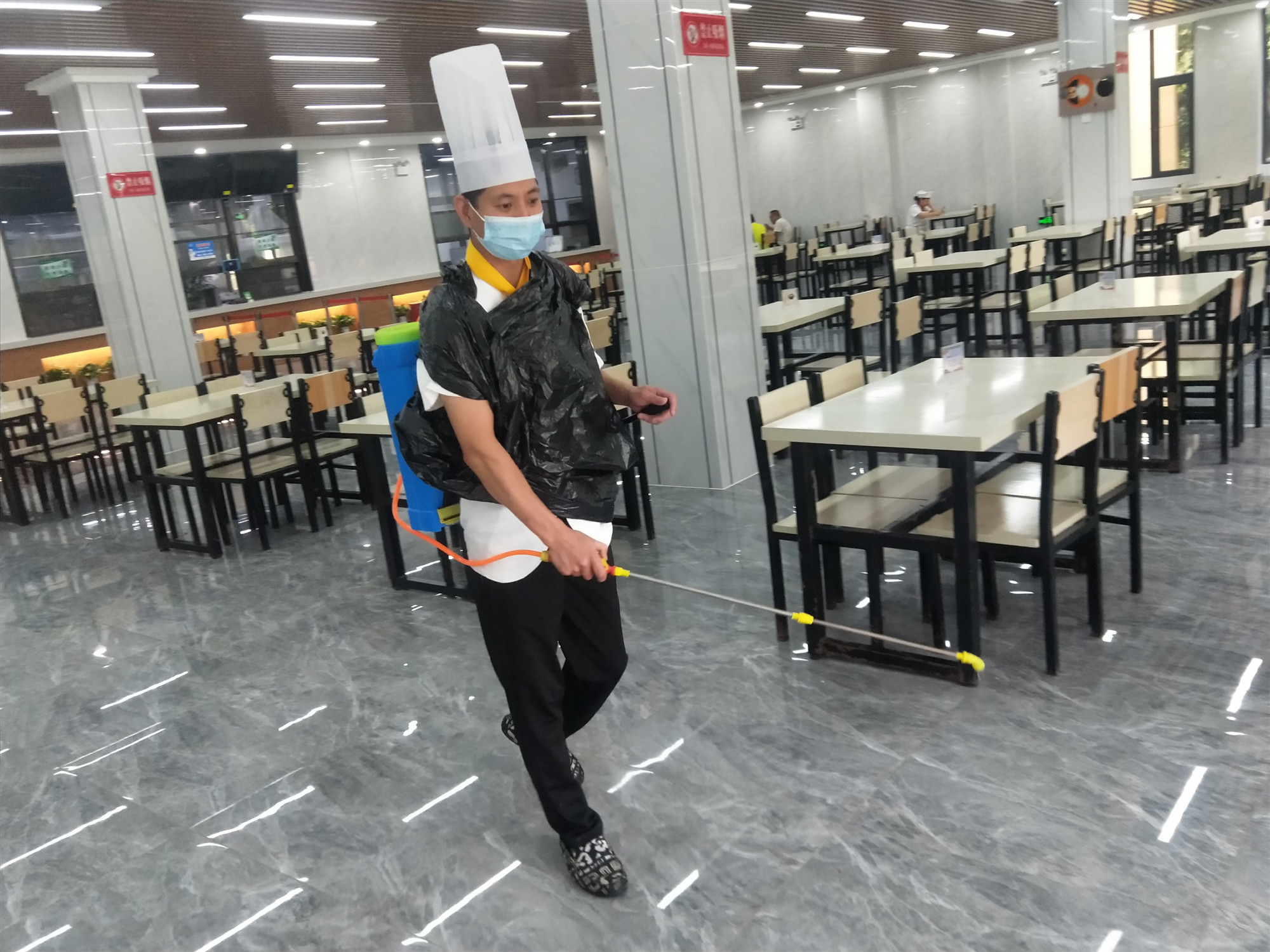 加強(qiáng)消毒管理,做好環(huán)境消殺。嚴(yán)格執(zhí)行公司疫情防控措施,就餐時(shí)間安排專人值守,維持秩序,督促就餐職工遵守防疫規(guī)定。同時(shí),加強(qiáng)衛(wèi)生保潔,對就餐桌椅和餐具嚴(yán)格消毒,并安排工作人員每天定時(shí)對餐廳及周邊環(huán)境進(jìn)行消殺。